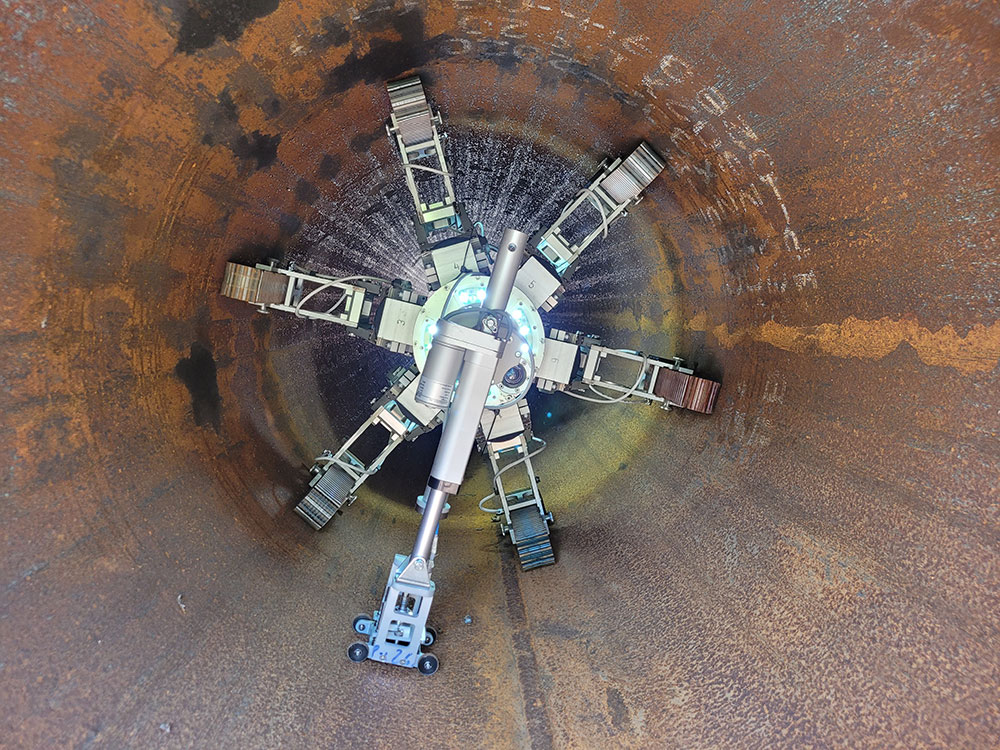 JettyRobot is the ideal tool for measuring the residual thickness of pipes from the inside. This enables the condition of pipes to be assessed, regardless of whether they are accessible from the outside or, for example, embedded in a dam.